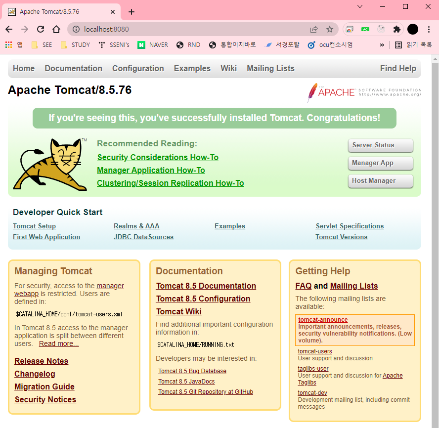 톰캣 설치 후 lcoalhost:8080 화면