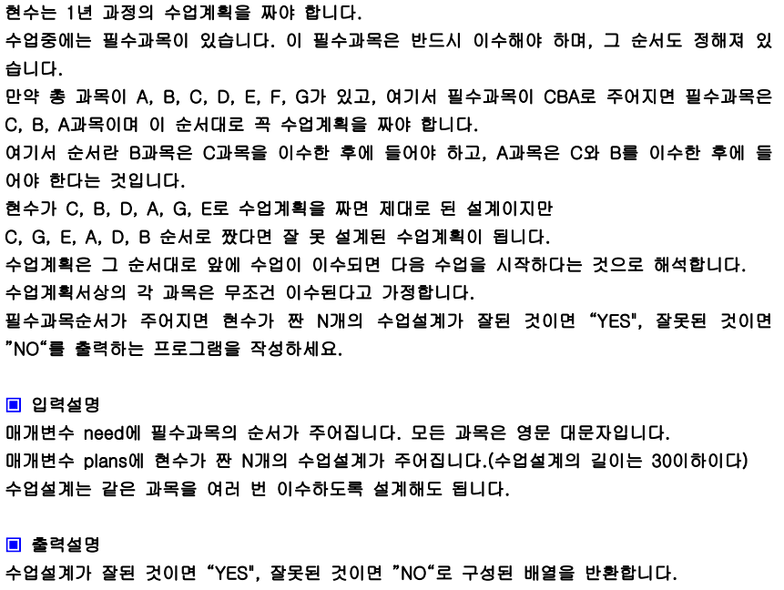 String[] plans = {"CBDAGE", "FGCDAB", "CTSBDEA"};