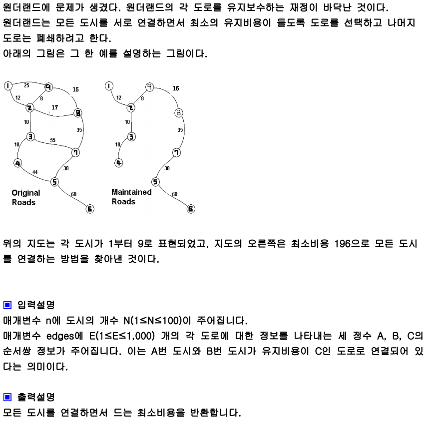 7) 원더랜드 (최소스패닝트리 : 크루스칼, Union & Find 활용)