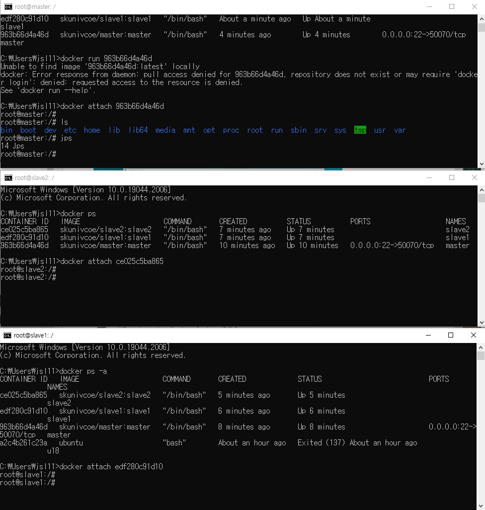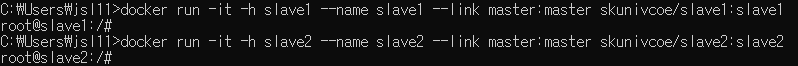 container name : master, slave1, slave2