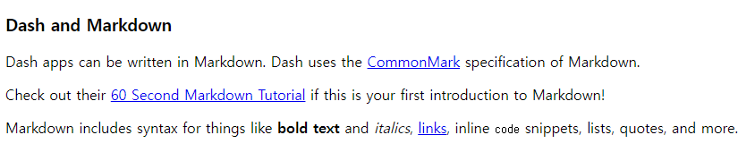 Dash uses the [CommonMark](http://commonmark.org/) specification of Markdown.