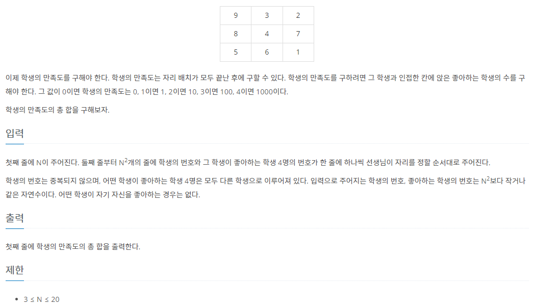 // 빈 자리를 확인하면서 빈자리 주변에 좋아하는 학생이 앉아있는지 탐색