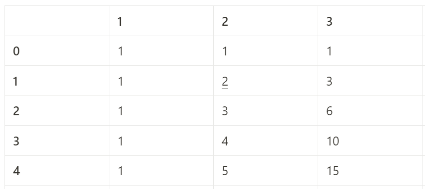 else dp[i][j] = dp[i][j - 1] + dp[i - 1][j];