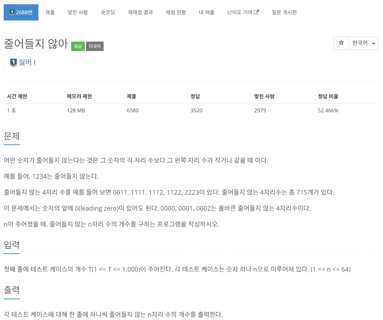// 어떤 숫자가 줄어들지 않는다 = 그 숫자의 각 자리 수보다 그 왼쪽 자리 수가 작거나 같을 때